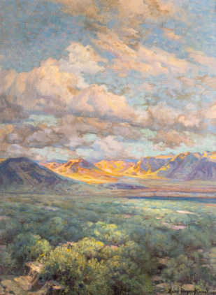 This exhibition is co-curated by longtime Reno art specialist Jack Bacon and Ann M. Wolfe, Andrea and John C. Deane Family Senior Curator and Deputy Director at the Nevada Museum of Art. It includes more than seventy paintings, with additional drawings, photographs, ephemera and artifacts drawn from private and institutional collections, including the Douglas County Historical Society and the Nevada Historical Society. Particular emphasis is placed on Meyer-Kassel’s romance with Nevada, where from his home in Genoa, his more formal, classically influenced style mellowed into a painterly perfection that resulted in breathtaking interpretations of Nevada’s landscape.