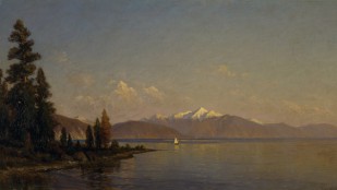 During the Golden Age of American landscape painting in the second half of the nineteenth century, Lake Tahoe and its nearby lakes inspired paintings by artists who were primarily associated with the burgeoning art world of San Francisco. Lake Tahoe itself did not become a subject for serious artists until the 1860s after the discovery of silver on the nearby Comstock. Early tourists to the lake included the influential Unitarian minister, Thomas Starr King, who visited in the summer of 1863 and delivered a rapturous sermon on the beauties of the lake to San Franciscans upon his return—surely enticing many artists to visit.