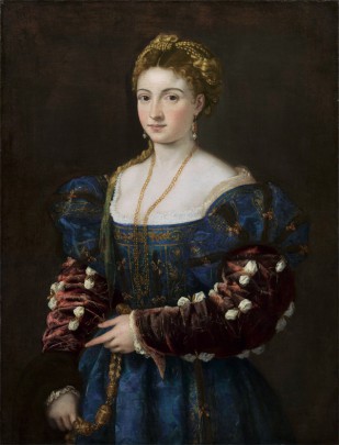 The painting was first commissioned by Francesco Maria I della Rovere, Duke of Urbino, a mercenary military leader. In 1536, the duke sent a letter to his agent in Venice inquiring about the progress of “”that portrait of that woman in a blue dress,”” whose completion he eagerly awaited. The painting in question was doubtless La Bella, which is today in the collection of the Galleria Palatina in Florence. The canvas has been cleaned recently, and the removal of discolored varnish has revealed the splendor of the woman’s blue dress and the luminosity of her flesh.