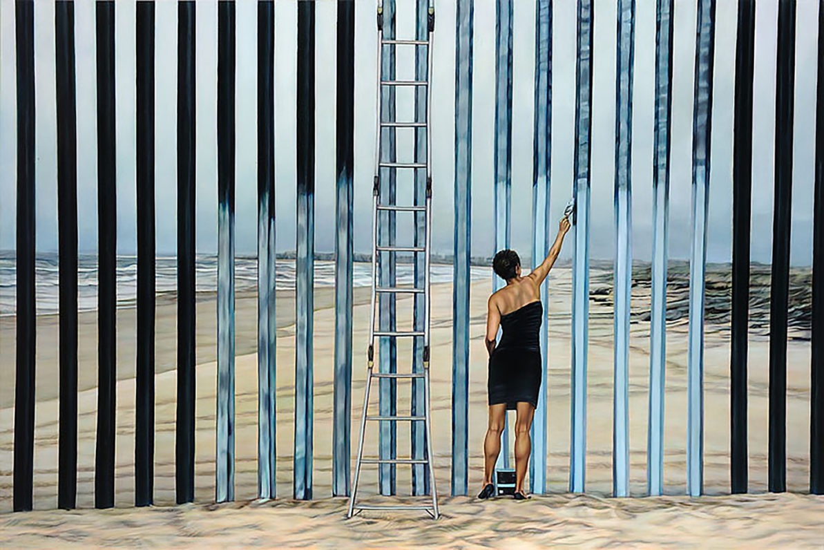 IMAGE 1: Micqaela Jones-Crouch, Granddaughter's Ride of Futility, 2012. Mixed media, 38 x 50 inches. Collection of the Nevada Museum of Art, Gift of the artist. IMAGE 2: Maynard Dixon, Edge of Amargosa Desert, 1927, Oil on canvas, 15 3/8 x 19 1/2 inches. Collection of the Nevada Museum of Art, Gift of Houghton family in memory of Samuel G. Houghton. IMAGE 3: Ana Teresa Fernandez, Erasing the Border (Borrando la Frontera) (still from video), 2012, video, duration: 3 minutes, 31 seconds. Collection of the Nevada Museum of Art, The Robert S. and Dorothy J. Keyser Foundation Art of the Greater West Collection Fund. IMAGE 4: Sonia Falcone, Campo de Color (Color Field) (detail), 2017. Terracotta plates, dry pigments, spices, salts. Collection of the Nevada Museum of Art, The Robert S. and Dorothy J. Keyser Foundation Art of the Greater West Collection Fund IMAGE 5: Blom Pots. Collection of the Nevada Museum of Art, Gift of John and Brenda Blom. IMAGE 6: Graciela Iturbide, Mujer Angel, Desierto de Sonora (Angel Woman, Sonora Desert), 1979. Gelatin silver print, 13 x 19 inches. Collection of the Nevada Museum of Art, The Robert S. and Dorothy J. Keyser Foundation Art of the Greater West Collection Fund. IMAGE 7: Guillermo Bert, Lukutuwe (Fertility), 2012. Wool and natural dyes, encoded with an Aztec bar code. Collection of the Nevada Museum of Art, The Robert S. and Dorothy J. Keyser Foundation Art of the Greater West Collection Fund, with additional funds provided by Michael and Frances Weber. IMAGE 8: Brian Jungen, Prototype for New Understanding #23, 2005, Nike Air Jordans, 18 ½ x 20 ½ x 5 1/2 inches. Collection of the Nevada Museum of Art, partial gift of Debra and Dennis Scholl and The Robert S. and Dorothy J. Keyser Foundation Art of the Greater West Collection Fund.