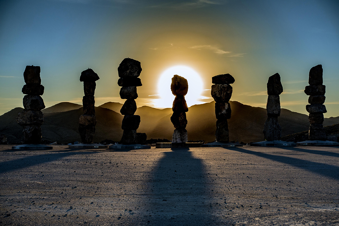 Ugo Rondinone’s Seven Magic Mountains, near Jean Dry Lake, Nevada, 2016