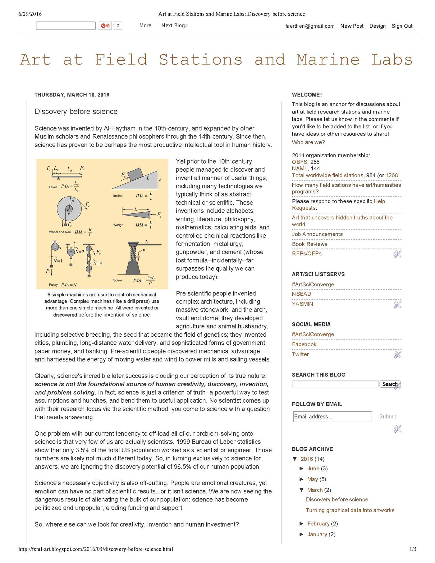 | SUMMARY NOTE | Webpage capture of a blogpost arguing that pre-scientific discoveries serve as an example of the advances that could be made though the reintroduction of the humanities into the scientific process. |