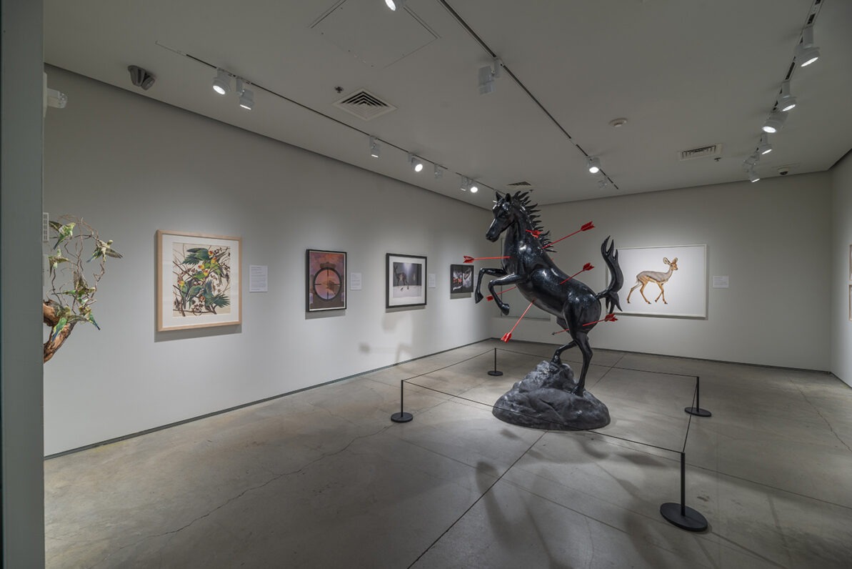 Drawn from the Museum’s permanent collection, Animal Crossings includes works that reveal various facets of the human-animal interface. The artists included in the exhibition reflect on ways that humans love, admire, study, hunt, and kill animals for a multitude of different reasons.