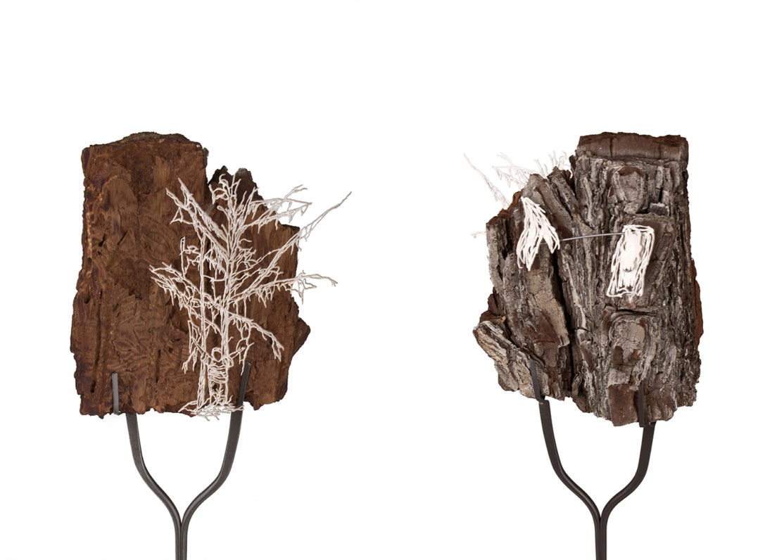 While working in the field with the Land Arts Program of the American West, Bethany Wood collected images and impressions of major land features, such as Spiral Jetty and the Bingham Copper Pit. But she also kept note of the nomadic encampment deployed by the class, and from that created a unique metal-and-paper pop-up “book.” Her works take some of the largest land interventions in the West and transform them into small intricate sculptures you can hold in your hand.