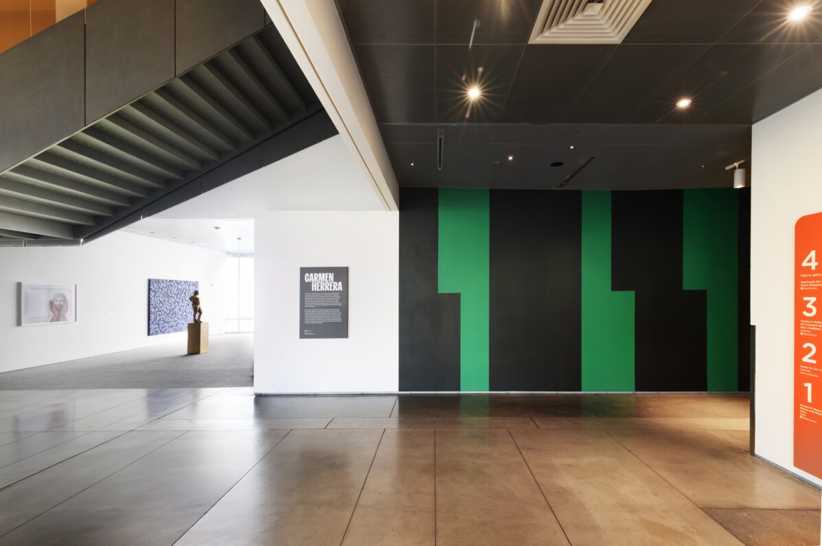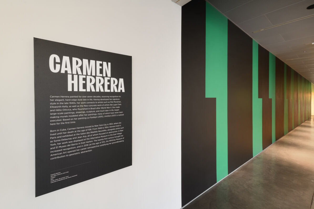 Born in Cuba, Carmen Herrera moved to New York City in 1954, where she lived until her death at the age of 106. From 1948 to 1954, Herrera lived in Paris and exhibited at the Salon des Réalités Nouvelles, alongside artists such as Sonia Delaunay and Jean Arp, all of whom focused on abstraction. In New York, her work was displayed at the Alternative Museum in the East Village and El Museo del Barrio in East Harlem. The twenty-first century brought her increased recognition, and in 2016 (at the age of 101), the Whitney Museum of American Art opened her career retrospective solidifying her groundbreaking contribution to geometric abstraction.