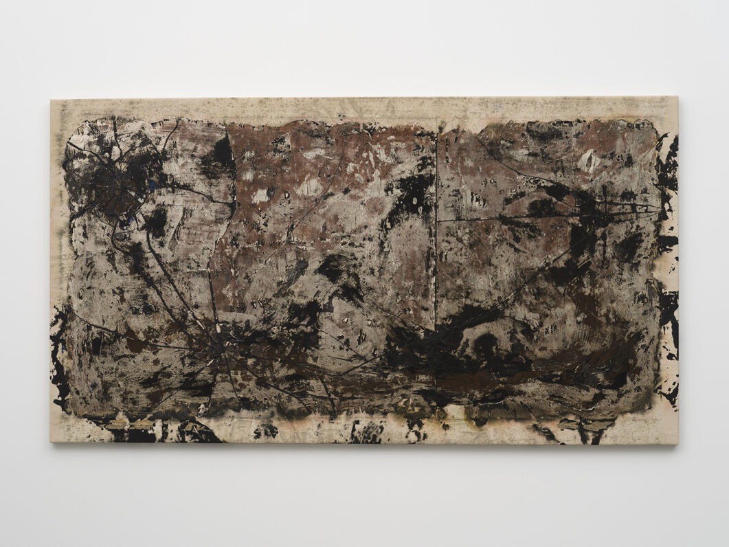 This exhibition highlights Arceneaux’s series Skinning the Mirror, which he started in 2021. In this expansive body of work, he uses the mirror as a device to explore the formulation and fracturing of identity, specifically in relation to memory. Using found mirrors, Arceneaux separates the reflective substrate from the sheet of glass, which he then applies to a prepared canvas. The process of “skinning” a mirror becomes an exercise of control and chance, often leading to imperfections. Cracks, flaws, and small shards of glass remain on the fabric’s surface during the decoupling. The resulting works resemble traditional abstract paintings while maintaining an alluring, reflective quality. Once the separation is complete, Arceneaux places the paintings at sites tied to a historical narrative he is investigating. Over time, the atmosphere of the selected locale alters the surface of the canvas, imbuing it with the environment so that the work itself becomes a part of the history that Arceneaux is exploring.