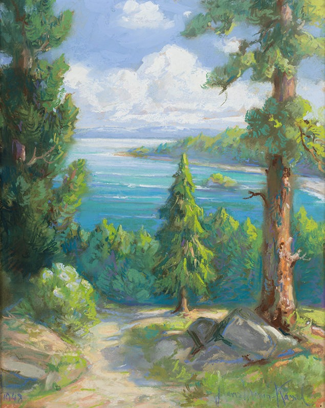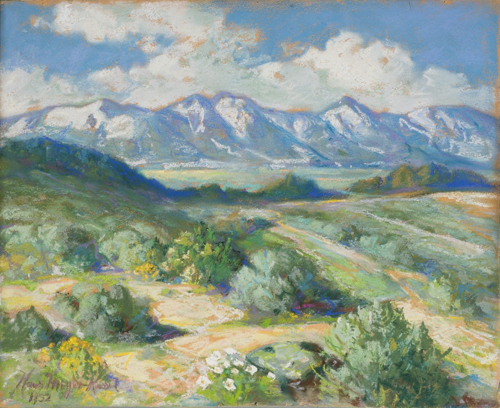 The paintings of Hans Meyer-Kassel (1872-1952) have hung in the castles of kings and the homes of presidents. Still today, decades after his death, his artwork can be found in state capitols, university campuses, historical societies, court houses, government buildings and museums across the United States and Europe. His artwork lives in archives, books, magazines and even on a United States postage stamp—as well as in the homes of scores of Nevada families. Classically trained as a painter at the University of Munich in his native Germany, Meyer-Kassel immigrated to the United States at the end of World War I to escape the post-war tumult. He endured the Great Depression in New York City, but after being invited to exhibit in Pasadena, California in 1935, he became enamored with the American West. Within a year, he and his wife, Maria, moved to Reno, later relocating to Carson City, before settling in Genoa, where he worked from his small studio at the base of the Carson Range. Meyer-Kassel loved Nevada from the time of his first visit, and over the next two decades, he built his reputation as one of the most prolific and successful artists in the region. While his primary interest was portraiture, he also became known for his vividly colored floral still lifes, and his depictions of Nevada’s vast desert expanses, river valleys, and cloud-filled skies.
