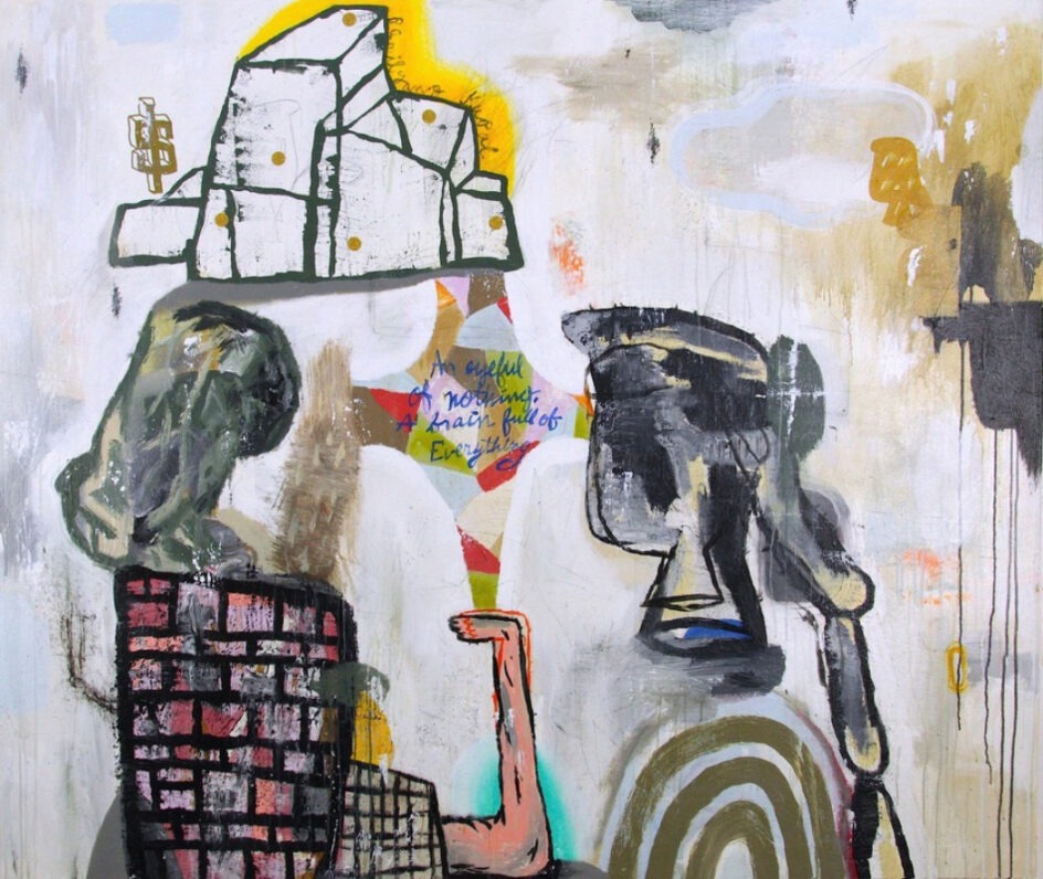 This spotlight exhibition highlights a single painting by John Yoyogi Fortes. Drawing from multiple sources including Filipino culture, comics, pop culture, and art history, Fortes layers symbols, marks, and text into his multi-dimensional works, including this mixed media from the permanent collection of the Nevada Museum of Art.