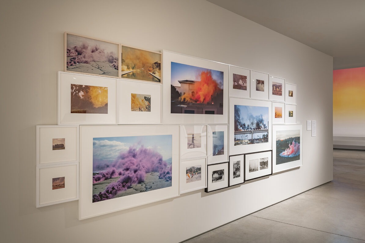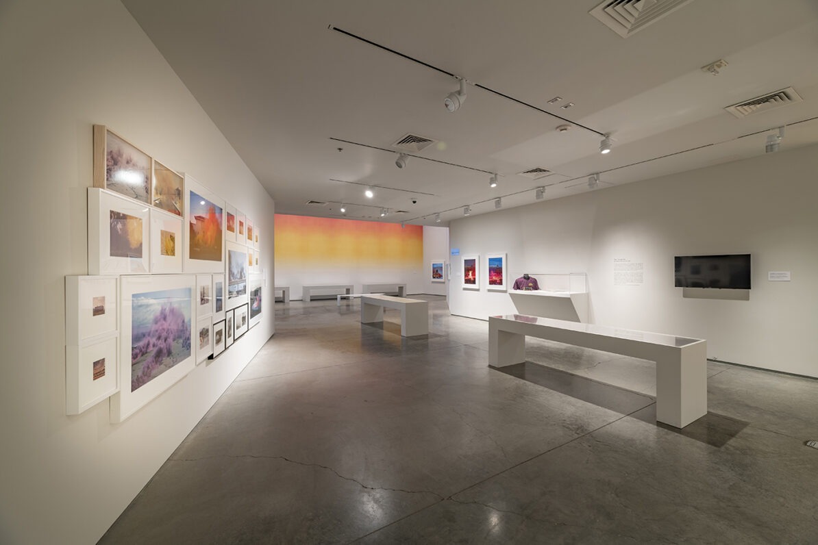 One of the most noteworthy responses to the monumental Land Art interventions came at the same time as their production. Beginning in 1968, the artist Judy Chicago embarked on a series of ephemeral Atmospheres performances using colored smokes and fireworks in the deserts of the American West that were intended to “soften that macho Land Art scene,” as she puts it. Long overlooked by art historians and scholars, Chicago’s Atmospheres series provides a critical counterpoint and essential context to the predominantly male Land Artists working in the desert during the 1960s and 70s. It is for this very reason that the Nevada Museum of Art began working with Chicago in 2018 to secure the acquisition of her entire fireworks archive for the Center for Art + Environment archive collection. This exhibition debuts the archive publicly for the first time, and features never-before-seen vintage photographs and 16 mm films, ephemera such as correspondence and permits, press coverage, related clothing, as well as large-scale photographs documenting the history of Chicago’s Atmospheres performances from 1968 to the present.