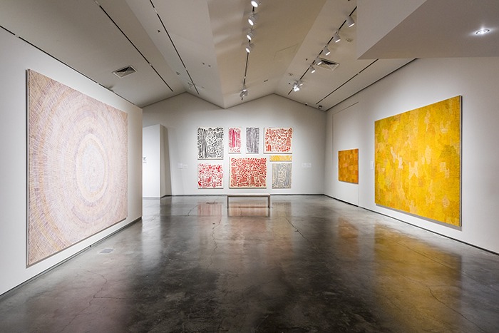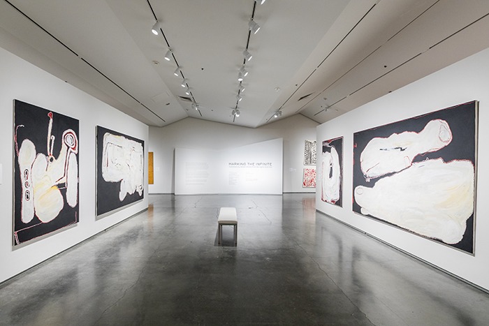 Marking the Infinite presents the work of nine of Australia’s leading Aboriginal women artists. While many of them have established reputations in Australia, for many this exhibition represents their American debut. Revered as matriarchs in their communities, the artworks made by these women are proud assertions of who they are and represent the pride they have in their communities. This strength of vision is immediately evident in works that shimmer and swirl, that assert their authority like lightning bolts, or sparkle like the night sky.