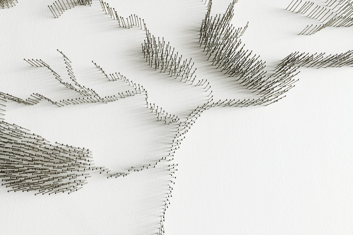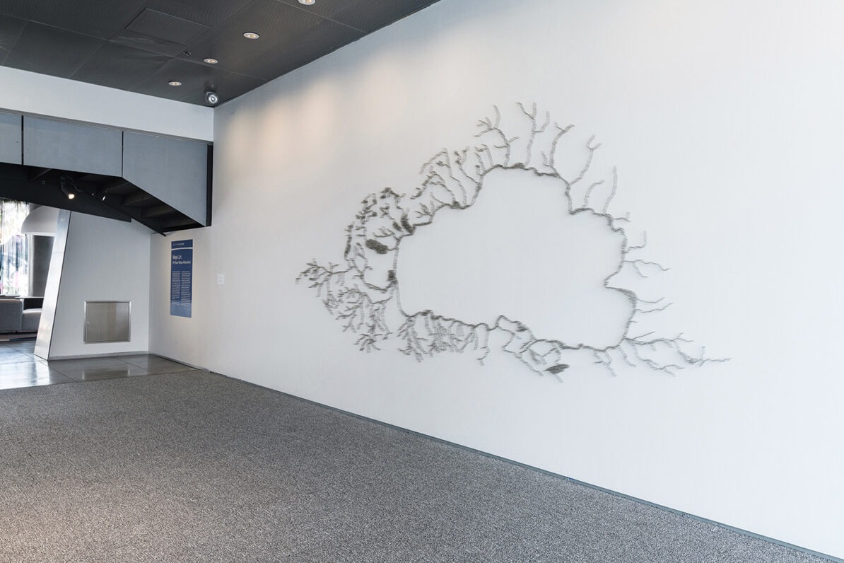 For more than two decades, Maya Lin (b. 1959) has engaged the vocabulary of cartography, producing artworks as diverse as stand-alone sculptures, civic monuments, and room-sized installations that manifest the complex natural and cultural systems operating in the world. In 2012 the Museum invited her to make Pin River–Tahoe Watershed in response to the unique Lake Tahoe landscape. After visiting with scientists at the UC Davis Tahoe Environmental Research Center, Lin created a series of works that visualize the foundational structures of the planet—in part by manufacturing an architecture of its natural features.