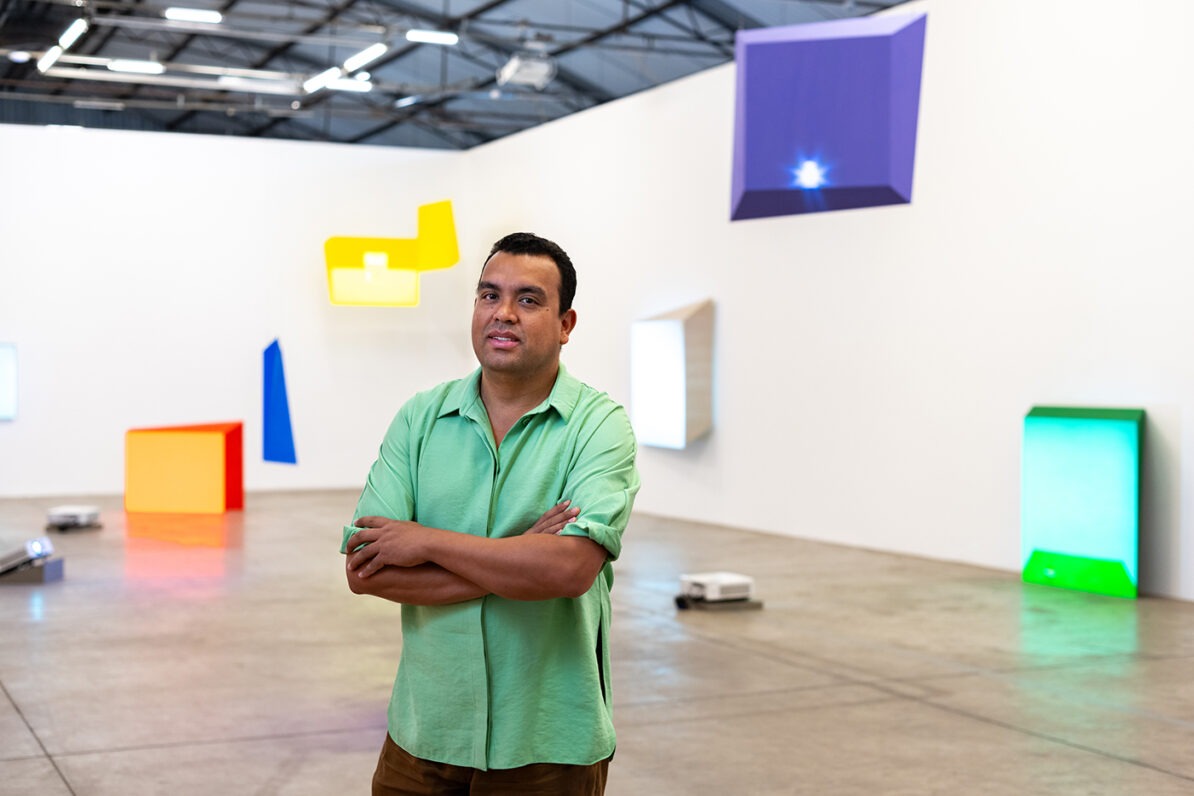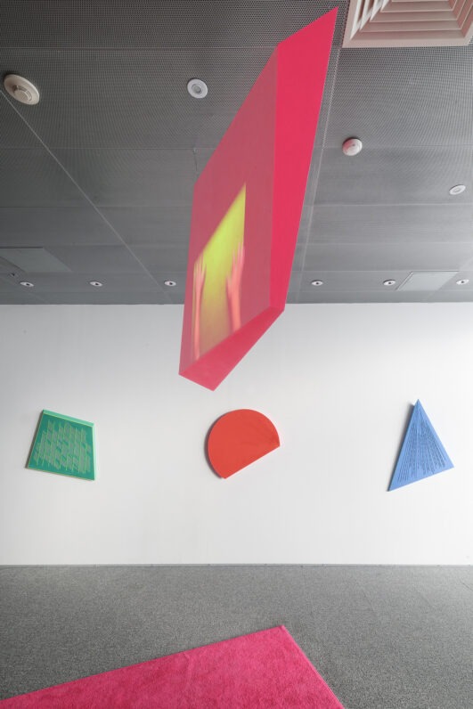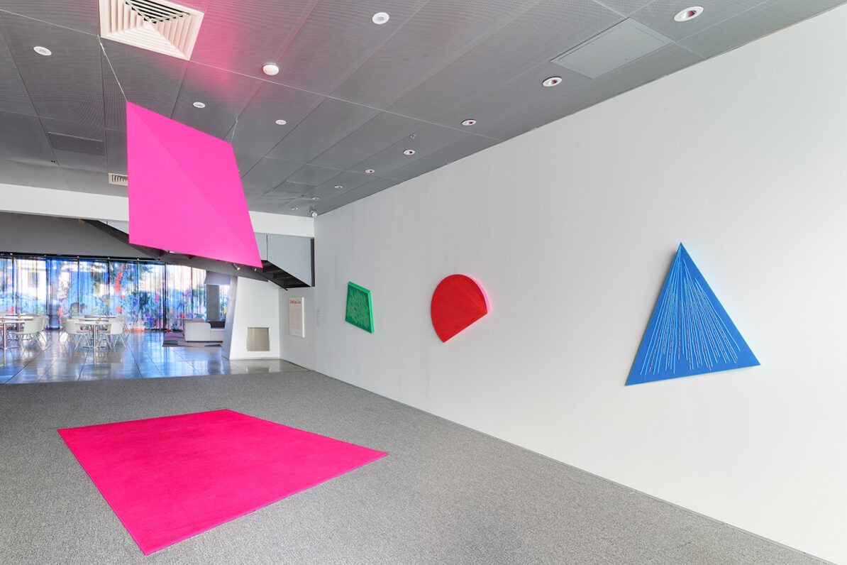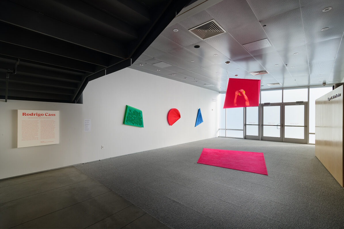 This presentation marks Cass’s first solo, museum exhibition in the United States. The immersive presentation integrates different geometric shapes, appearing in diverse media, to explore the interplay of color, movement, and gesture in a given spatial configuration. These elements create a sensorial experience that moves beyond representation, where aesthetic form becomes a vessel for poetic expression. The installation invites quiet contemplation on mysticism, inner life, and spatial construction.