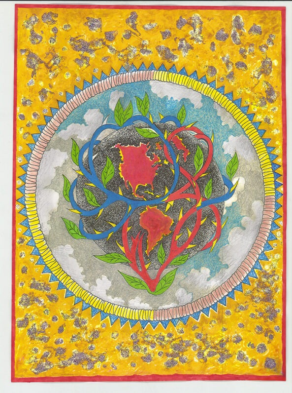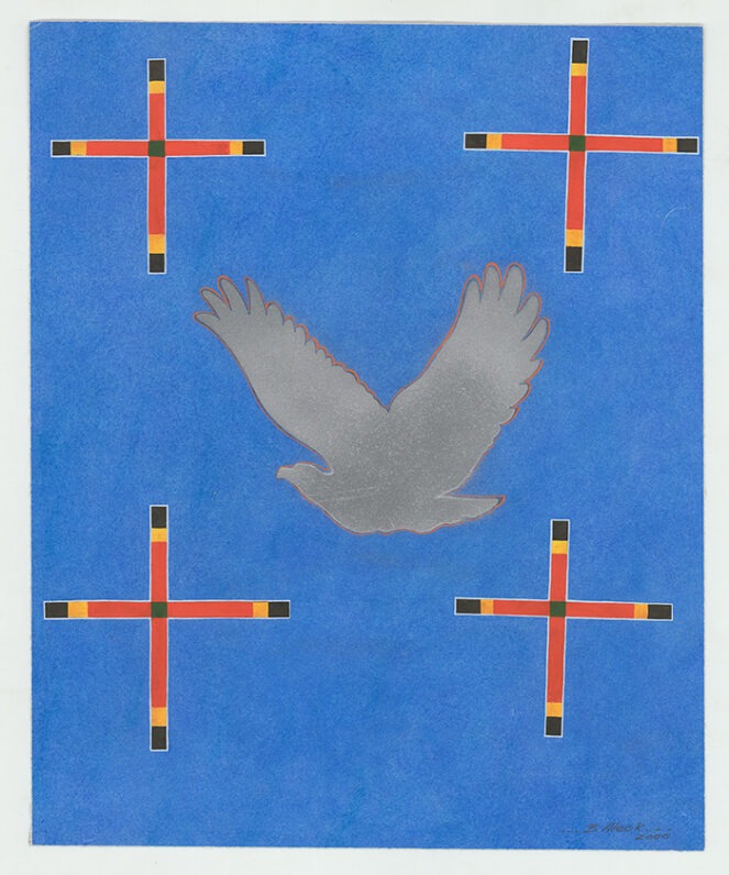 Featuring more than thirty works, this exhibition honors the career of artist Ben Aleck, a lifelong educator and enrolled member of the Pyramid Lake Paiute Tribe (Kooyooe Tukadu/cui-ui fish eaters.) Aleck was born in Reno in 1949 and raised on the Reno-Sparks Indian Colony (RSIC). A graduate of Wooster High School, he attended the California College of Arts and Crafts (now California College of the Arts) in Oakland, California, where he witnessed the politics and protest of the Vietnam War era and the countercultural movement of the late 1960s. His past involvement with the American Indian Movement (AIM) and the American Indian Occupation of Alcatraz have also shaped his artistic practice. Aleck’s paintings, illustrations, and prints give visual form to Indigenous stories about the stars, coyote, plants, the formation of Great Basin lands, and the origins of its people.