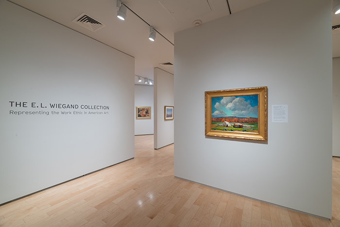 The artworks that comprise the E. L. Wiegand Collection date from the early twentieth century to the present and represent various manifestations of the work ethic in American art. While many emphasize people undertaking the physical act of labor, others focus on different types of work environments ranging from domestic interiors and rural landscapes to urban cityscapes and industrial scenes. By expanding the definition of the term work ethic to encompass a broad range of activities undertaken by a diverse spectrum of people from various cultural and socioeconomic groups, the collection seeks to acknowledge all those who have devoted their lives to the tireless pursuit of work.