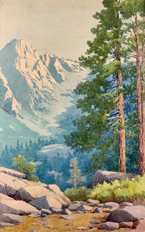 The Latimer Art Club was the founding volunteer organization of the Nevada Art Gallery, which is known today as the Nevada Museum of Art. The San Francisco-based painter Lorenzo Latimer first visited Fallen Leaf Lake on the south side of Lake Tahoe in summer 1914. It was there that he began to teach annual plein air painting classes. In 1916, he was invited by two students to teach a painting class in Reno. He returned for the next twenty years and became a cherished member of the Northern Nevada arts community.