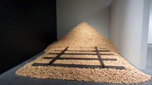 The nineteenth-century paintings and photographs of Donner Pass seen throughout this exhibition tend to offer romantic views of picturesque rail cars and pristine landscapes. Whether intentionally or not, artists typically marginalized or ignored the presence of Chinese workers. Many Chinese and Chinese-American artists working today seek to revisit this visual history, producing artworks in a variety of media to honor and memorialize the stories of those who perished during the construction of the railroad.